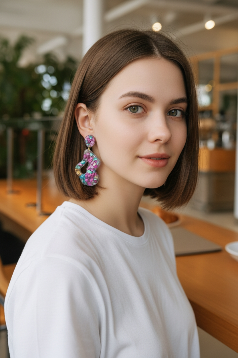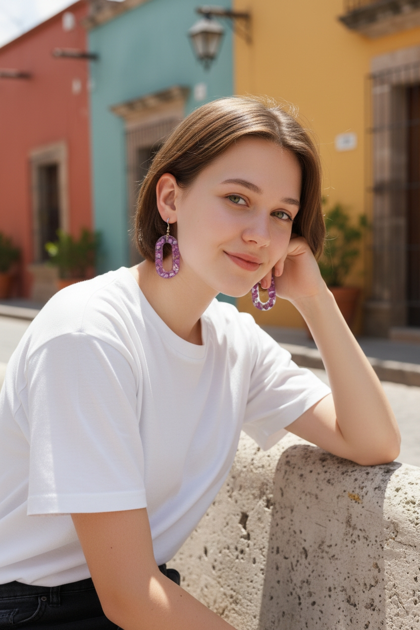 Ces boucles d’oreilles en résine époxy transparente sont comme des gouttes de clarté figées dans le temps. La matière, limpide et lumineuse, laisse apparaître des pierres délicatement incrustées, telles des trésors découverts au cœur d’un cristal.