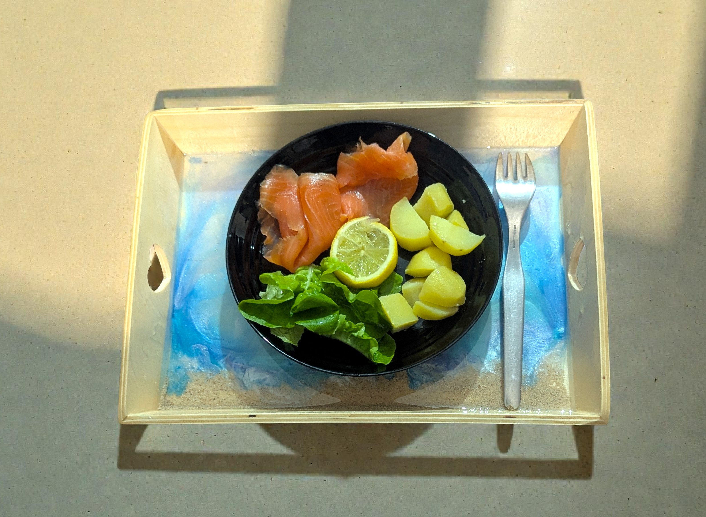 Ce plateau en bois et résine époxy est une véritable invitation à l’évasion.