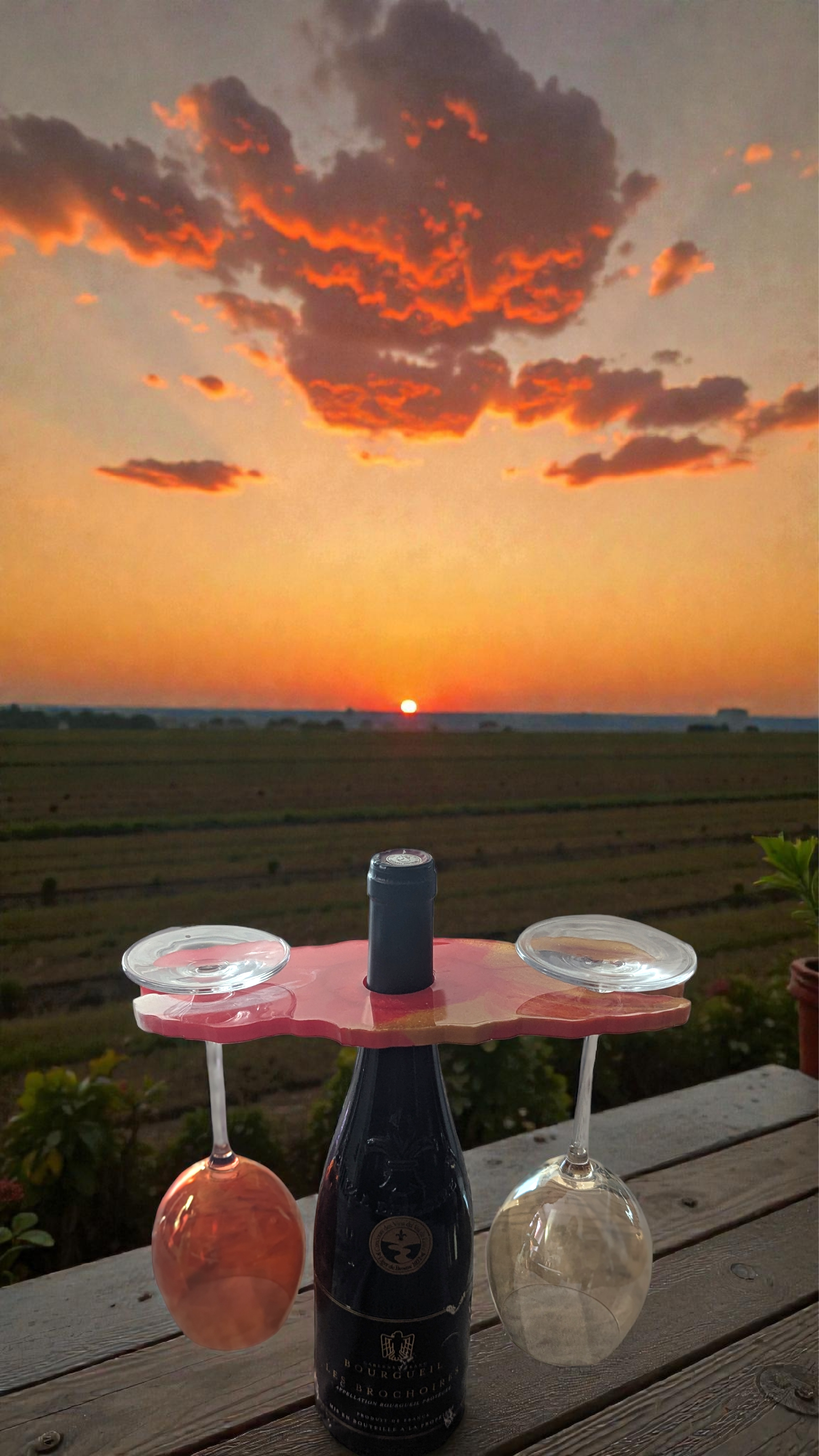 Ce support bouteille en résine époxy est une ode aux instants précieux, ceux que l’on savoure lentement, comme un coucher de soleil partagé.